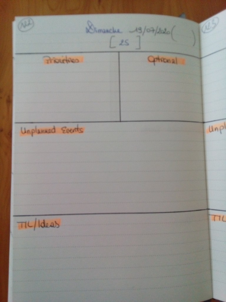 Up above is how I organize my day. If the only thing you’ve noticed is how I wrote the date in French and the rest in English… I have a word starting in F for you but I won’t say it, since my parents taught me to be polite.
