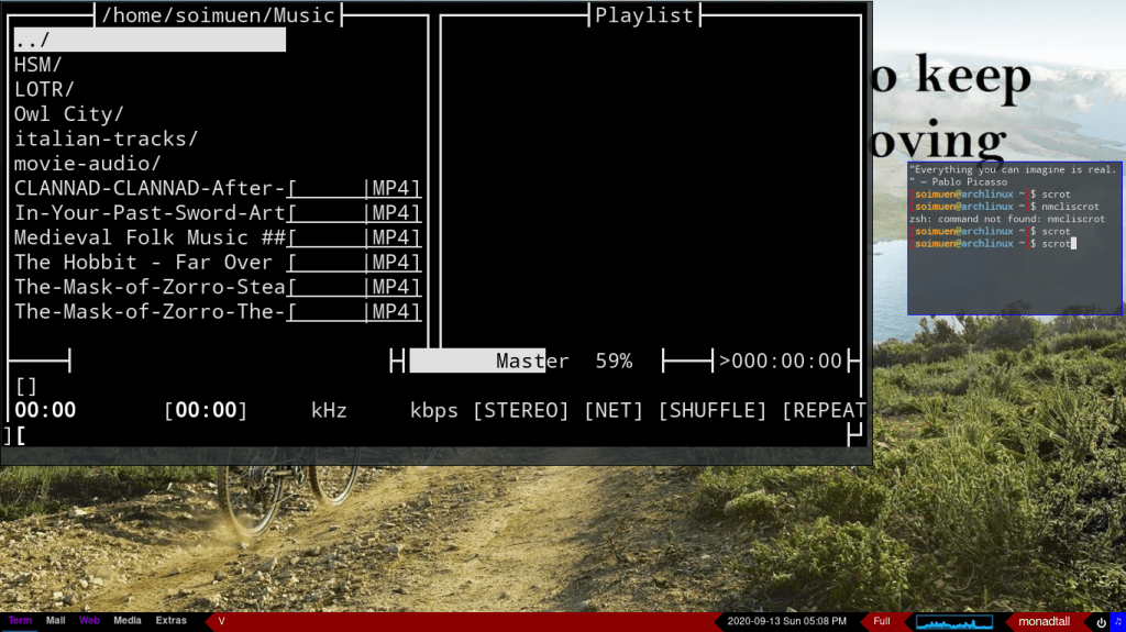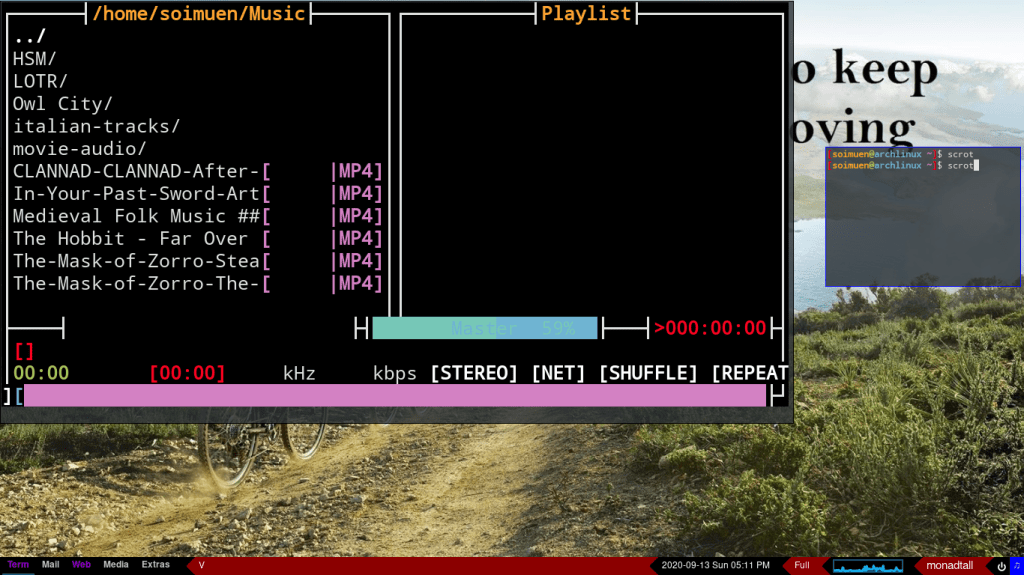 - cmus : another nice one which runs with vim keybindings (wait… why aren’t I using it already?)
