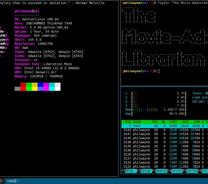 Once upon a time, a fervent Arch Linux advocate desired to switch to Gentoo. Not only his own kin had recommended it to him, but his research had also led him to believe that it was the promised land from his wildest dreams. Yet he never once had dared and taken the first step on that formidable journey. His eternal thirst for knowledge, but also his quest toward absolute freedom eventually succeeded in convincing him. This is how, after many a year roaming through the Arch realm, dear Phil Wayne made up his mind and took the plunge down the rabbit hole, straight into the abyss of Gentoo Land. Continue reading Down The Gentoo Hole